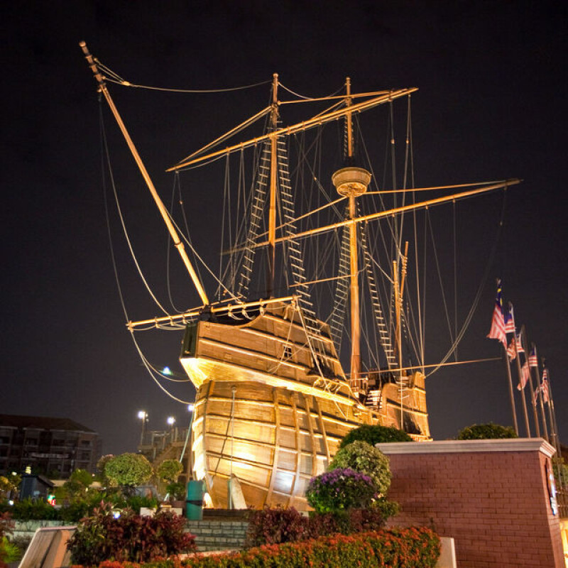 The Maritime Museum in Malacca is a renowned attraction located along the Malacca River, inside a striking replica of the Portuguese ship Flor de la Mar, which sank near Malacca in the 16th century. This impressive museum offers visitors a glimpse into the city’s rich maritime past, showcasing its pivotal role in the spice trade and its connections to various cultures and nations. Inside, exhibits include ship models, old maps, and artifacts that highlight how Malacca flourished as a major trading port, linking East and West.