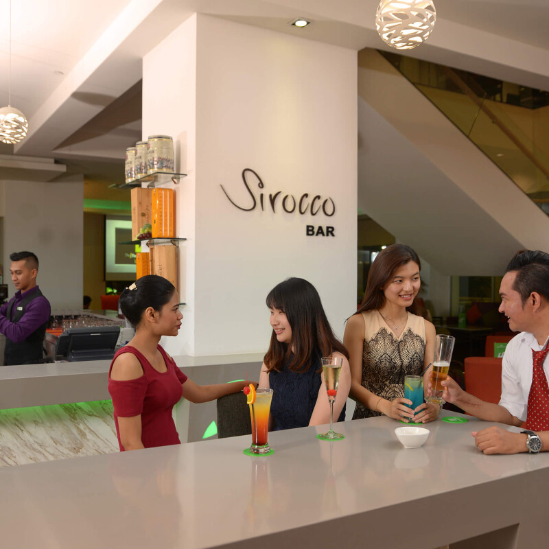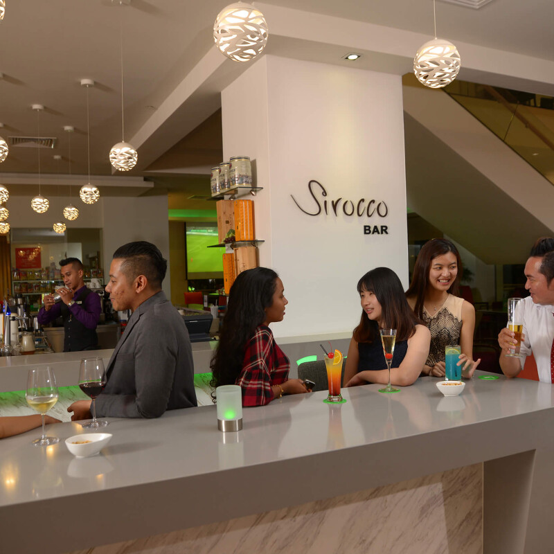 A quaint space for guests to enjoy insightful conversations, Sirocco Bar and Lounge is the perfect place to quench your thirst with a great selection from the beverage menu. You can also indulge with choices from the food menu that's stuffed with burgers, steaks and more.