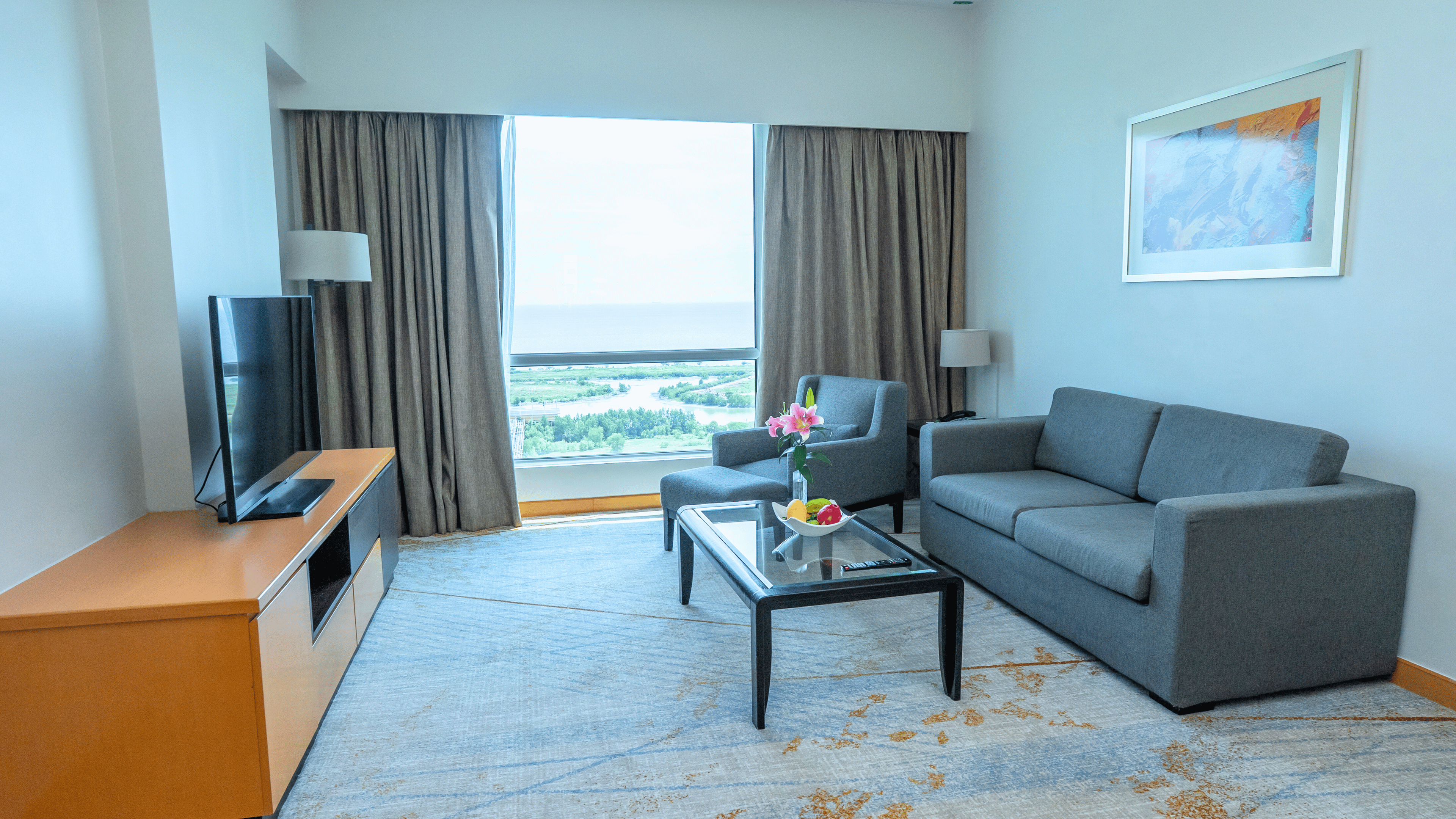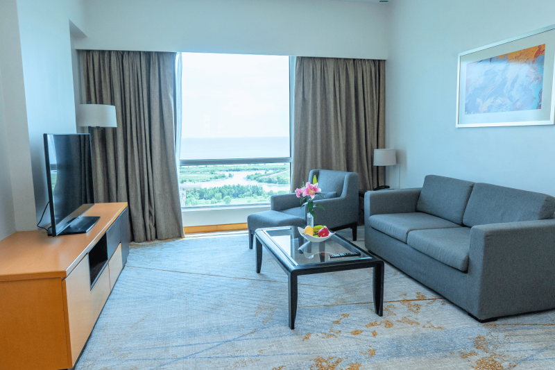 Overlooking the iconic Straits of Melaka and the city skyline, our suites feature a spacious master bedroom with an expansive living room, a separate dining area and an en suite bathroom for your convenience. It is also equipped with plush sofas and flat-screen TVs.