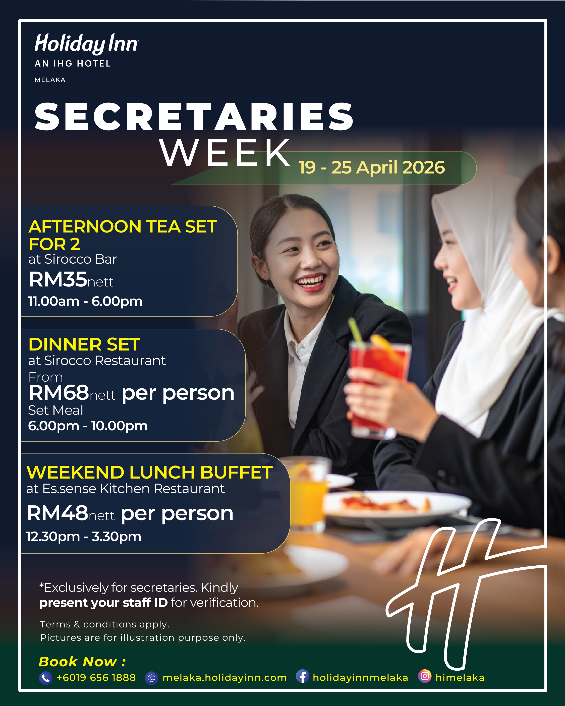 This Secretaries Week, show your appreciation with a well-deserved dining experience at Holiday Inn Melaka. Gather your team and enjoy quality time over great food in a welcoming setting.